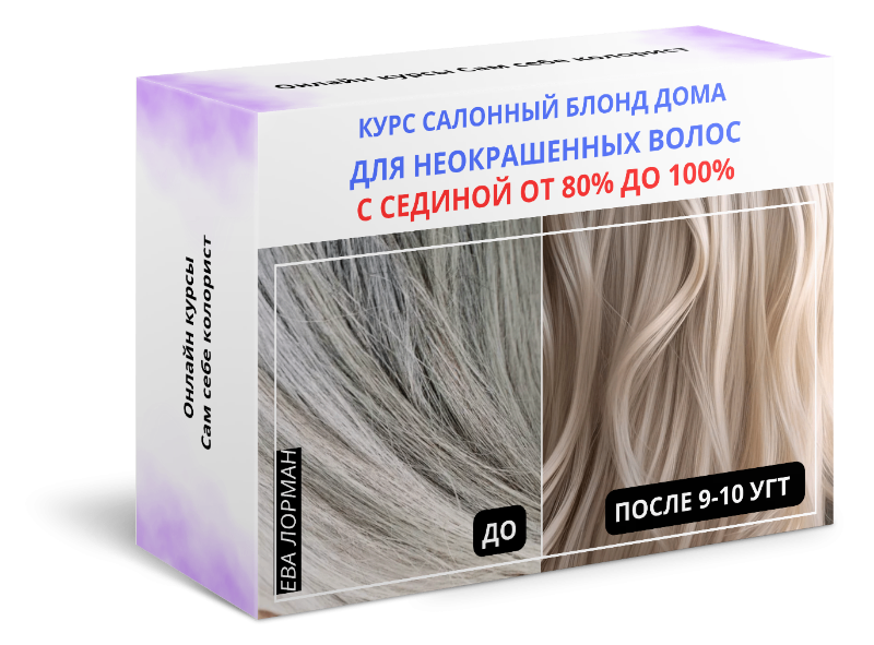 САЛОННЫЙ БЛОНД ДОМА ДЛЯ НЕОКРАШЕННЫХ ВОЛОС С СЕДИНОЙ ОТ 80 ДО 100 % Тариф VIP 2 ПОТОК